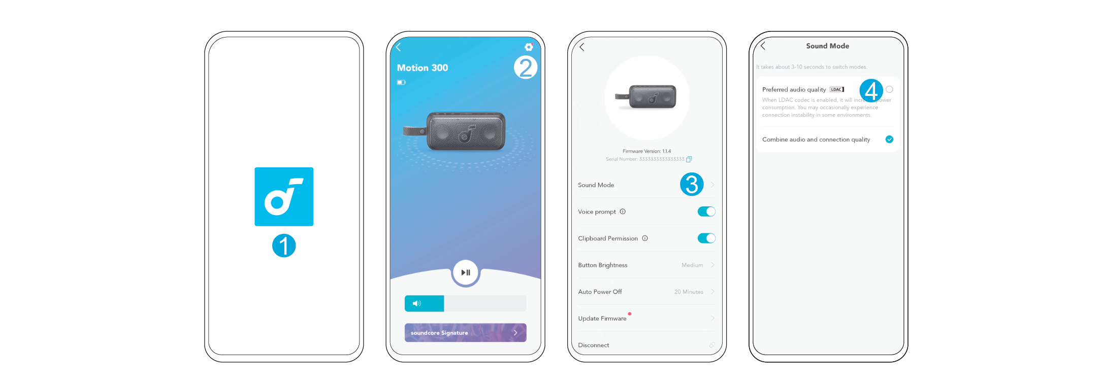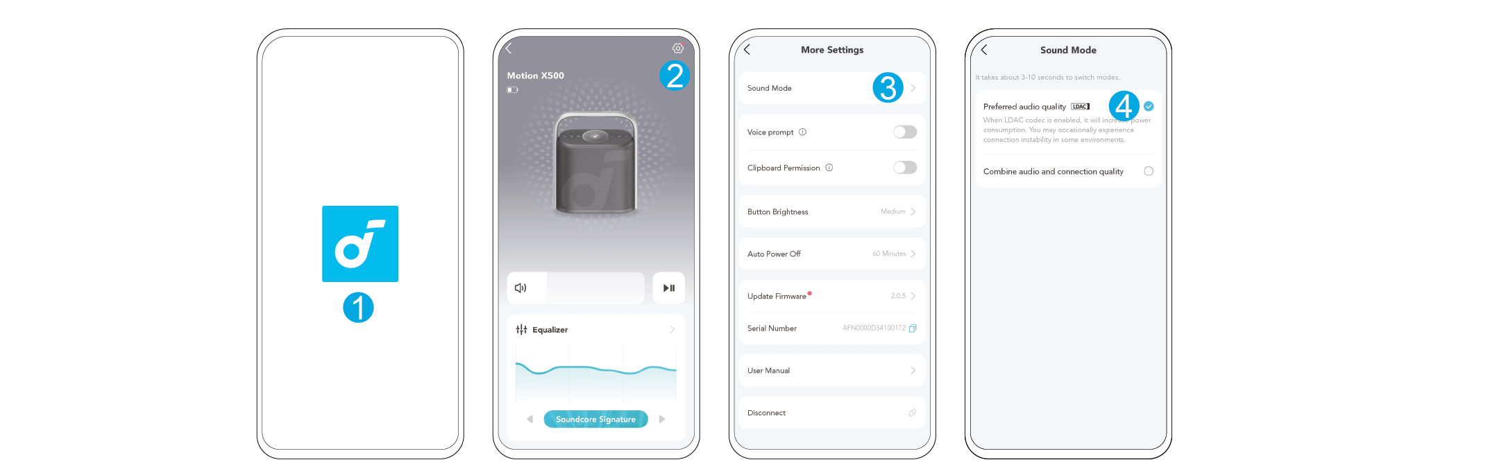 En la aplicación soundcore, toque el icono de Configuración > "Modo de sonido" > "Calidad de audio preferida".