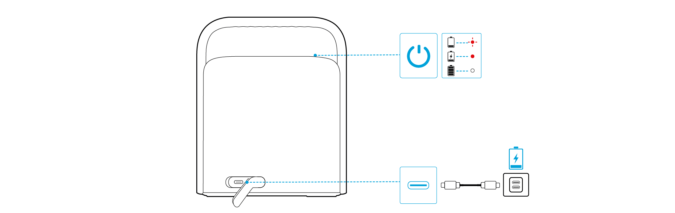 Akun tila: Ilmoittaa kaiuttimen jäljellä olevan akkutason.