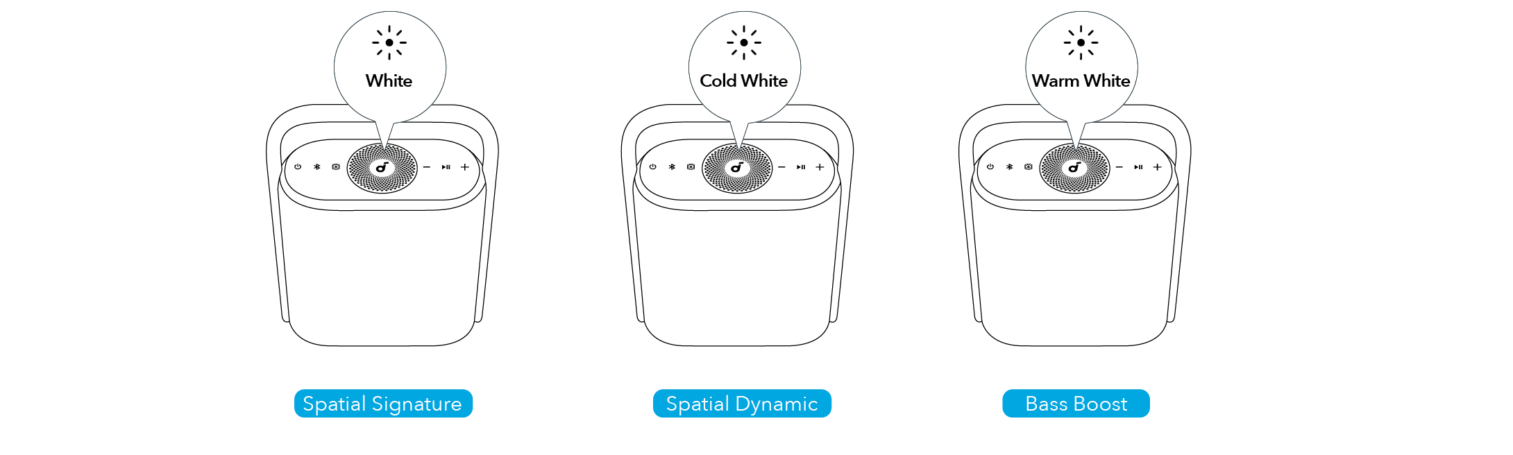 - soundcore-optimoitu: Normaali EQ-tila, joka on optimoitu tasapainoista ääntä varten.