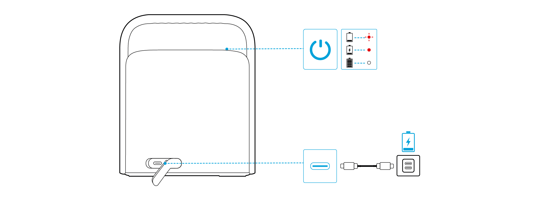 Stan baterii: Informuje o poziomie naładowania baterii głośnika.