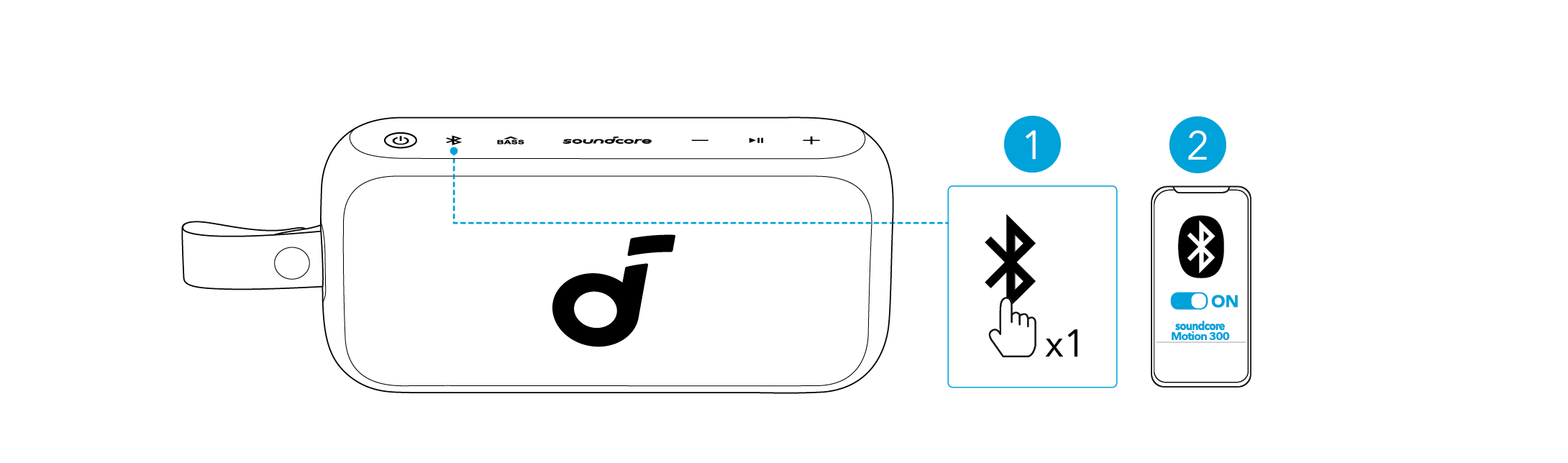 Naciśnij przycisk Bluetooth, aby wejść w tryb parowania Bluetooth, a następnie wybierz "soundcore Motion 300" z listy Bluetooth, aby połączyć.