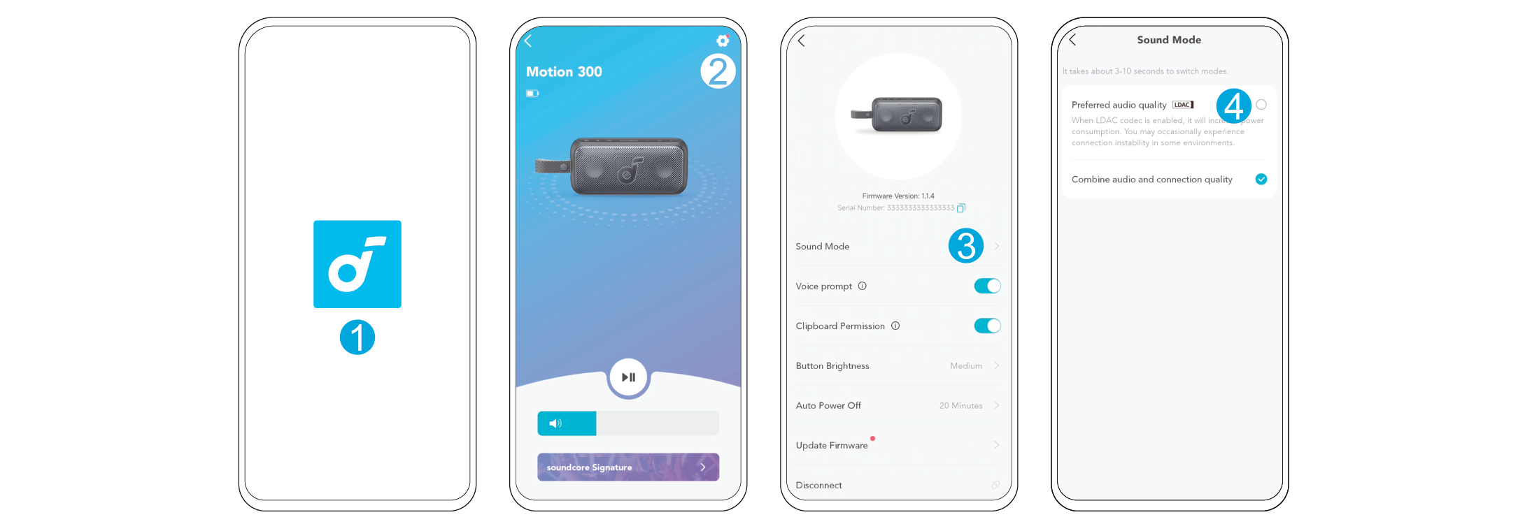 W aplikacji soundcore dotknij ikony Ustawienia > "Tryb dźwięku" > "Preferowana jakość dźwięku".