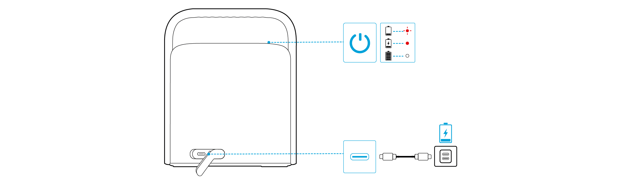 Batteristatus: Indikerar batterinivån på högtalaren.