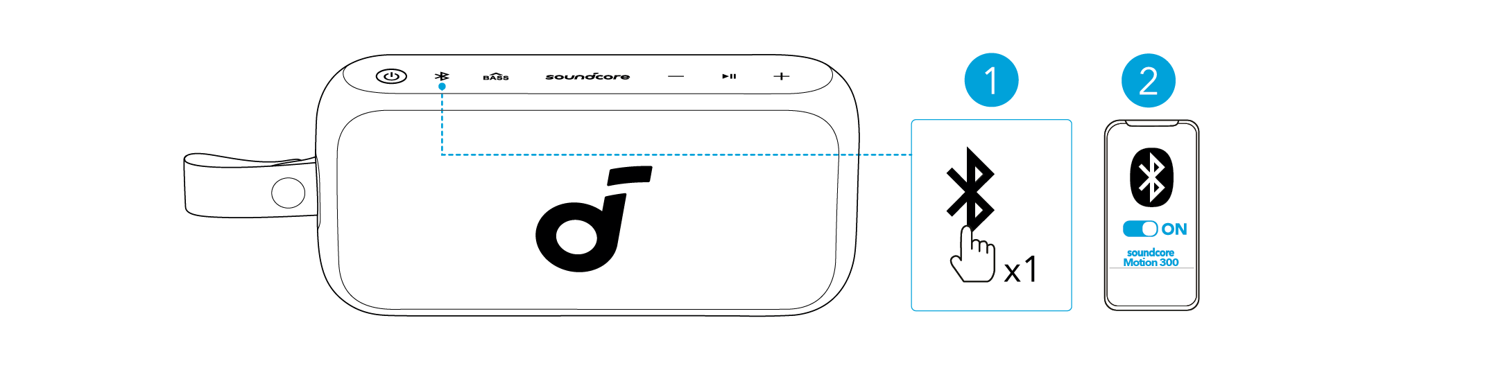 Tryck på Bluetooth-knappen för att komma in i Bluetooth-parningsläget, välj sedan "soundcore Motion 300" från Bluetooth-listan för att ansluta.
