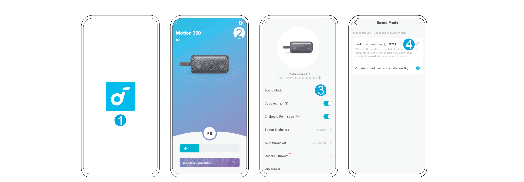 Bluetooth eşleştirme moduna girmek için Bluetooth düğmesine basın, ardından Bluetooth listesinden "soundcore Motion 300" seçerek bağlanın.