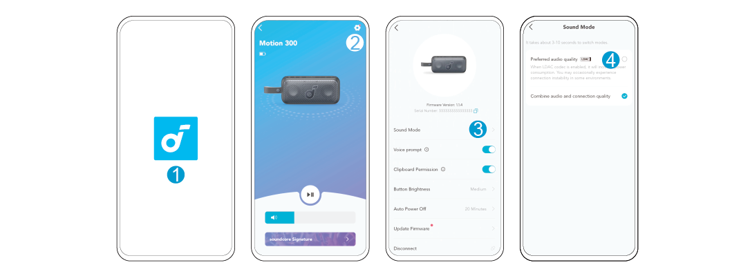 在soundcore App中,点击设置图标 > “声音模式” > “首选音频质量”。