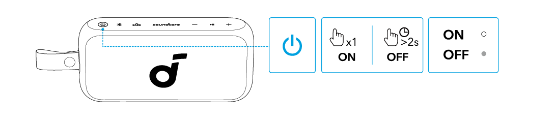- 每次开机时,音箱都会自动连接至上次成功连接的设备(在蓝牙范围内)。如果未曾连接设备,请按下蓝牙按钮进入蓝牙配对模式。