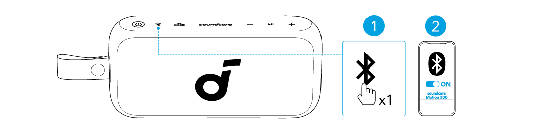 按下蓝牙按钮进入蓝牙配对模式,然后从蓝牙列表中选择“soundcore Motion 300”进行连接。