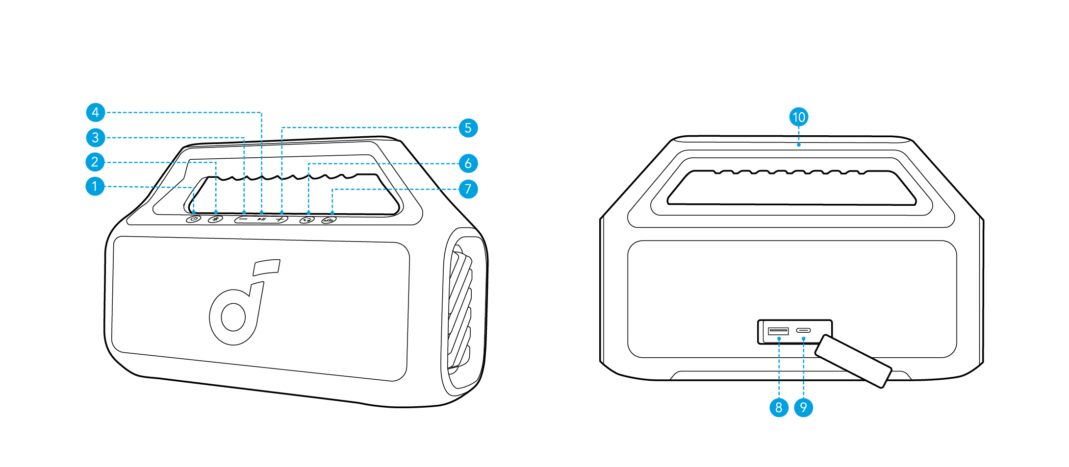Yhdistä yksi kaiutin älypuhelimeen ja paina PartyCast-painiketta jopa 100 soundcore-kaiuttimessa, joissa on PartyCast-toiminto, synkronoidaksesi äänen ja valon.