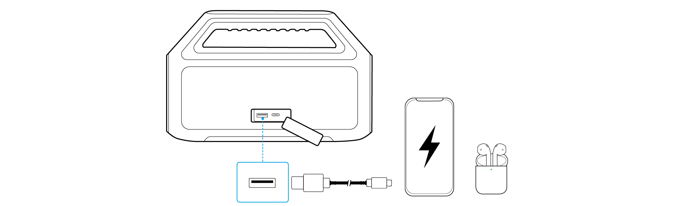 이 스피커를 이용하여 휴대용 기기나 액세서리를 충전하는 파워 뱅크로 사용하세요.