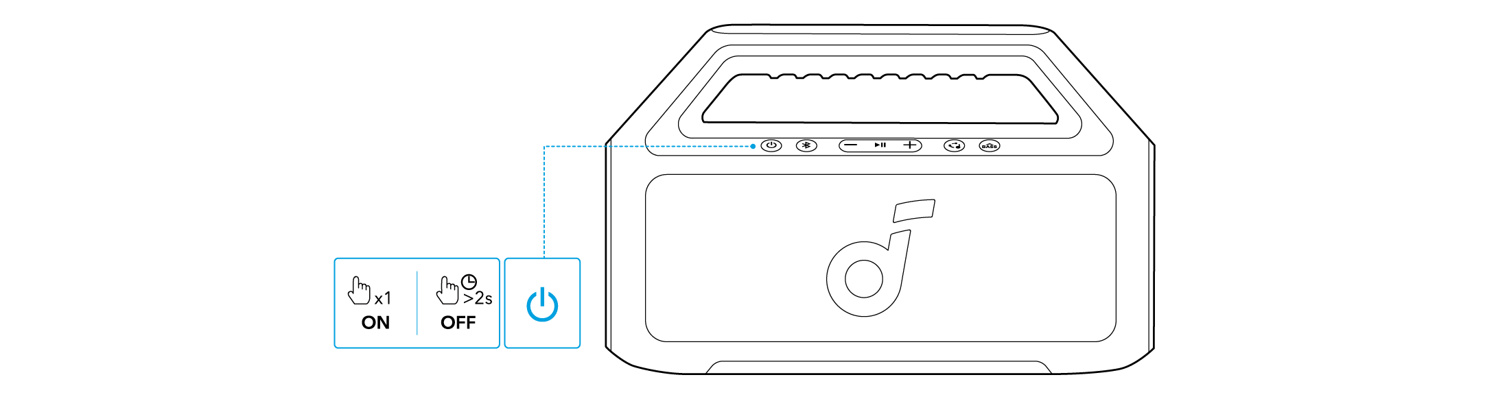 - 스피커의 전원을 켰을 때 마지막으로 연결된 장치가 Bluetooth 범위 안에 있는 경우 이 장치에 자동으로 연결됩니다. 감지되지 않는 경우 Bluetooth 버튼을 눌러 페어링 모드로 들어갑니다.