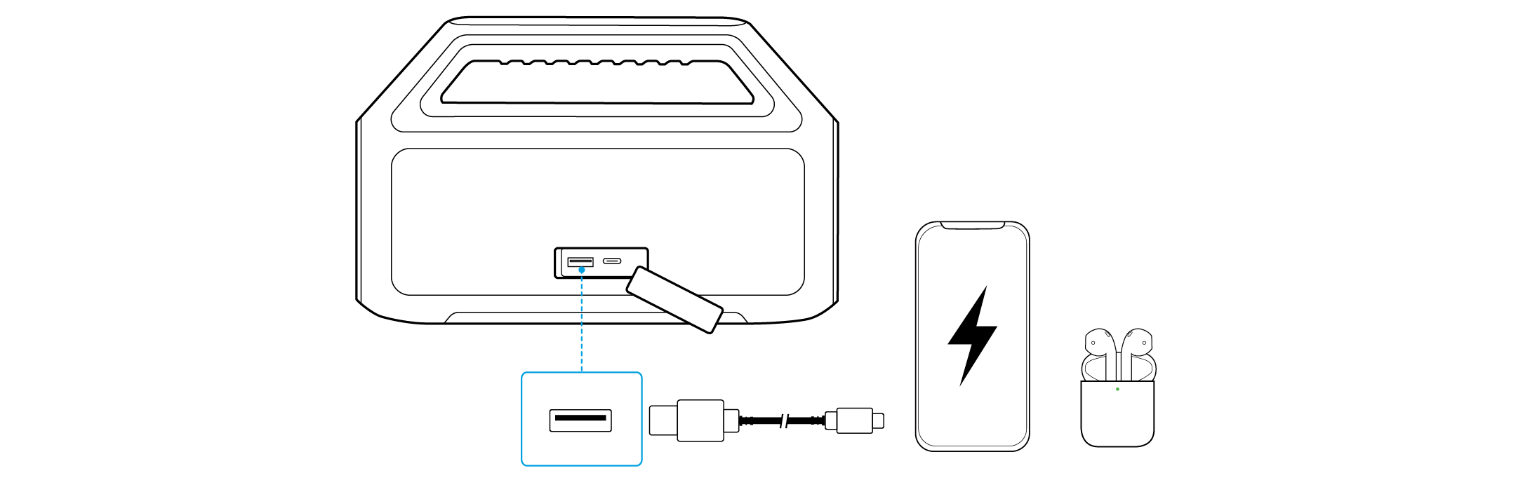 Gebruik deze speaker als powerbank om je draagbare apparaten of accessoires op te laden.