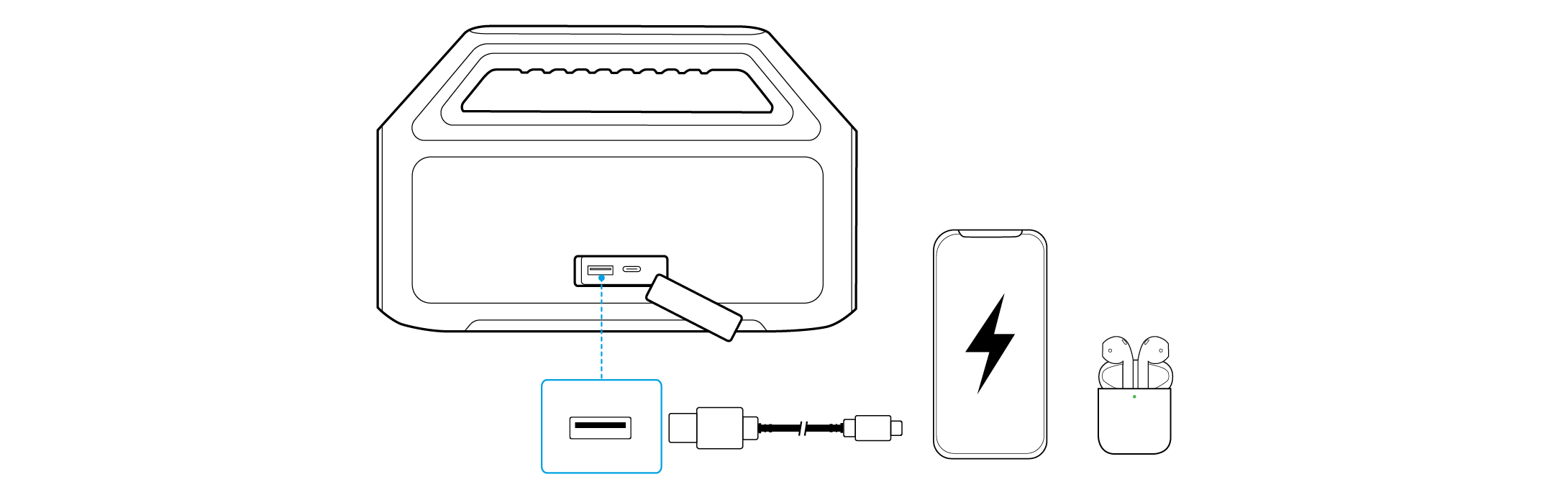 Используйте этот динамик в качестве портативного зарядного устройства для зарядки ваших мобильных устройств или аксессуаров.