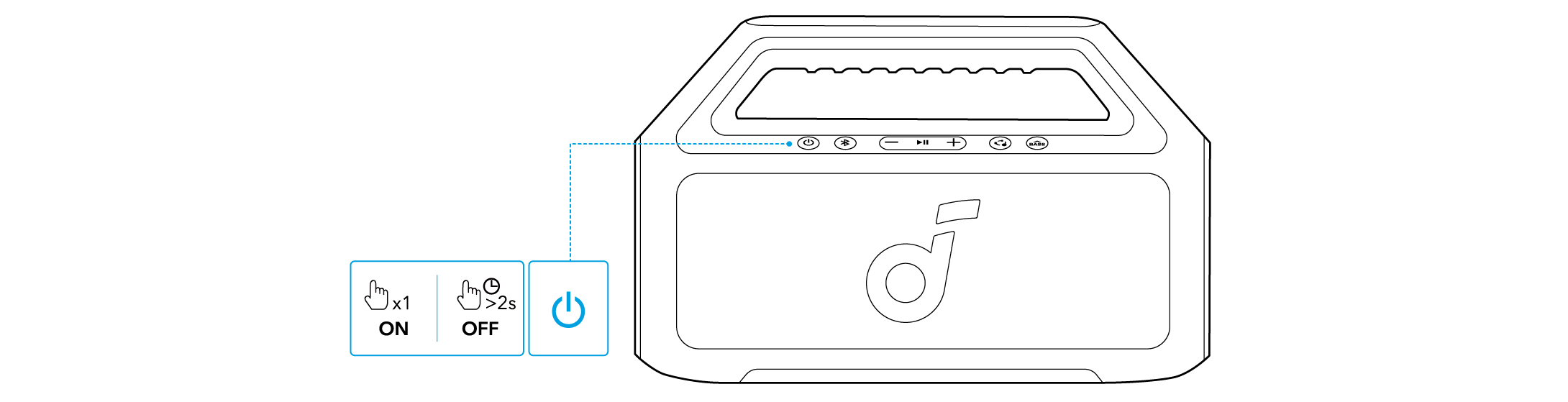 - 每次开机时,音箱都会自动连接至上次成功连接的设备(在蓝牙范围内)。如果未曾连接设备,请按下蓝牙按钮进入蓝牙配对模式。