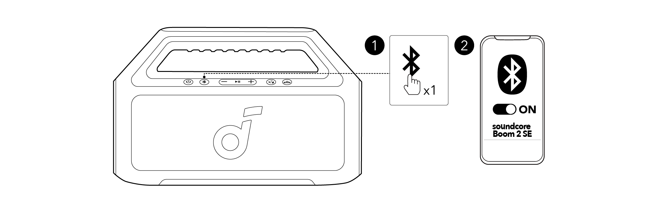 按下蓝牙按钮进入蓝牙配对模式,然后从蓝牙列表中选择“soundcore Boom 2 SE”进行连接。
