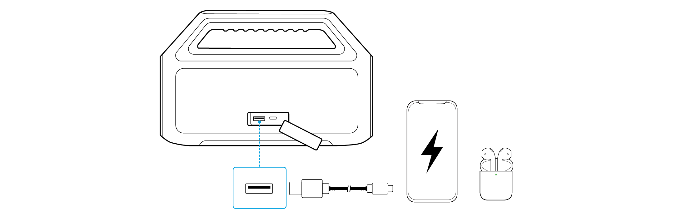 Använd denna högtalare som en powerbank för att ladda dina bärbara enheter eller tillbehör.