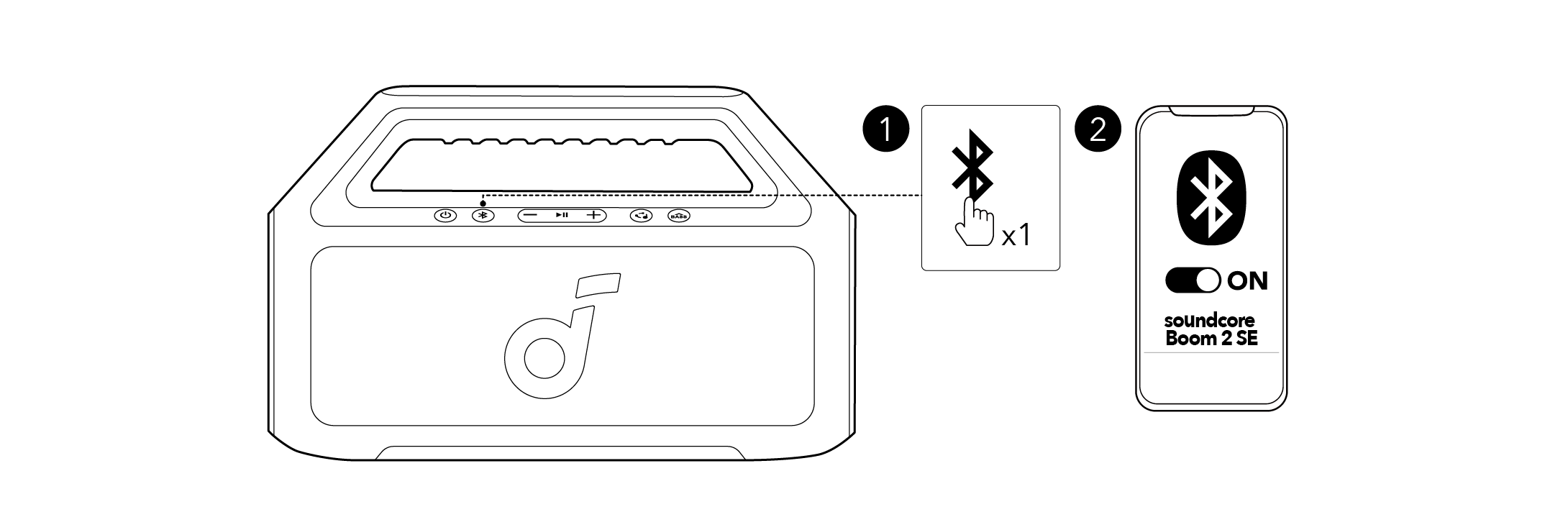 Tryck på Bluetooth-knappen för att komma in i Bluetooth-parningsläge, välj sedan "soundcore Boom 2 SE" från Bluetooth-listan för att ansluta.