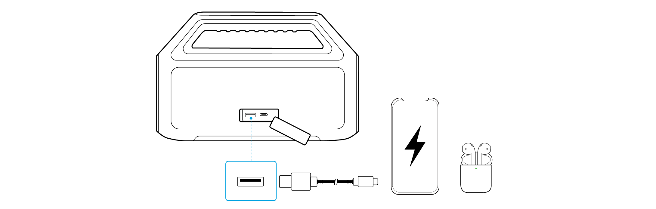 使用這個揚聲器作為行動電源,為您的便攜式設備或配件充電。