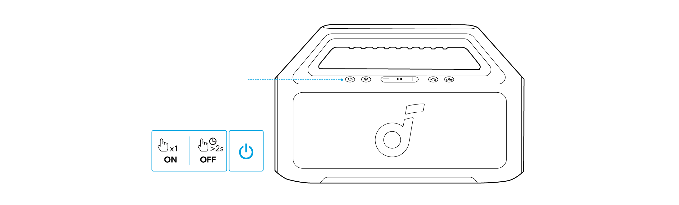 將一個揚聲器連接到智慧型手機,按下最多100個具有PartyCast功能的soundcore揚聲器上的PartyCast按鈕,以同步音頻和燈光。