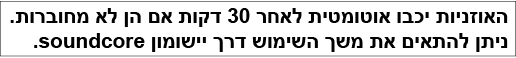אוזניות: תישמע הודעה קולית על התרוקנות הסוללה.
