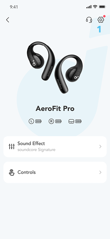Etter at du har fjernet isolasjonsklistremerkene på øreproppene, setter du øreproppene tilbake i ladeetuiet og trykker på knappen for å aktivere Bluetooth-sammenkobling. Du kan også sammenkoble ved å lukke og åpne etuilokket igjen når øreproppene er tilbake i etuiet. Øreproppene vil automatisk gå inn i Bluetooth-sammenkoblingmodus når de kobles til for første gang. Velg «soundcore AeroFit Pro» på enhetens Bluetooth-liste for å koble til.