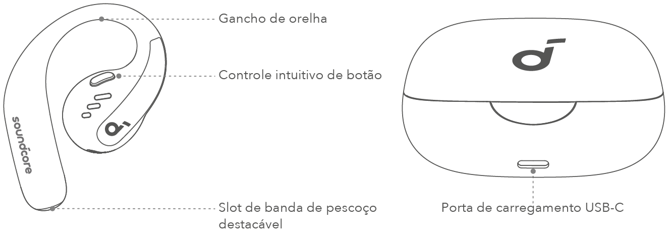 Após remover os adesivos de isolamento dos auriculares, volte a colocá-los na caixa de carregamento e, de seguida, prima o botão para ativar o emparelhamento por Bluetooth. Pode ainda emparelhar os dispositivos ao fechar e reabrir a tampa da caixa, depois de guardar os auriculares. Esta ação ativa automaticamente o modo de emparelhamento por Bluetooth dos auriculares, ao conectá-los pela primeira vez. Selecione a opção “soundcore Aerofit Pro” na lista de Bluetooth do seu dispositivo para proceder à ligação.