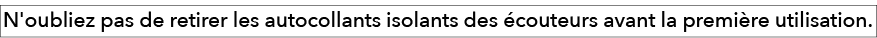 1 heure (écouteurs) ; 2 heures (boîtier de charge) |