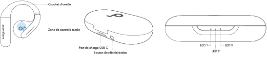 Boîtier de charge : L'indicateur LED 1 s'allumera pendant 3 secondes puis s'éteindra.