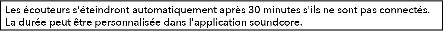 Pour éteindre les deux écouteurs, maintenez enfoncé le bouton de l'écouteur gauche ou droit pendant 2 secondes.