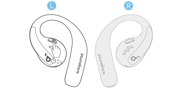 Pour allumer un seul écouteur, appuyez et maintenez enfoncé le bouton de l'écouteur correspondant pendant 2 secondes.
