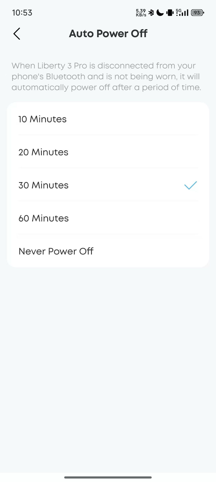 3. If the earbuds are not connected to Bluetooth and not being worn, they will automatically power off after 30 minutes (the auto power-off time can be customized in the soundcore app).