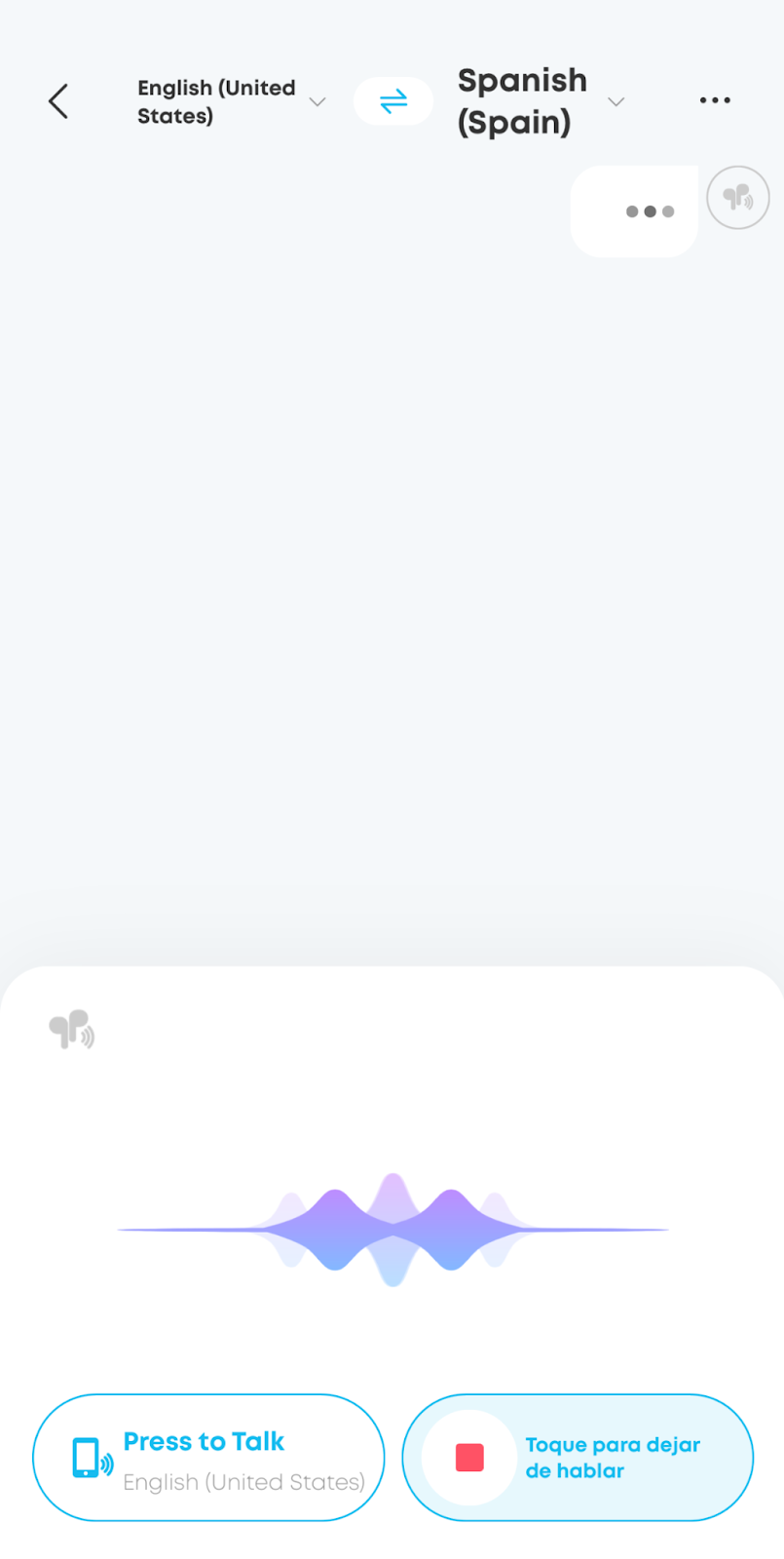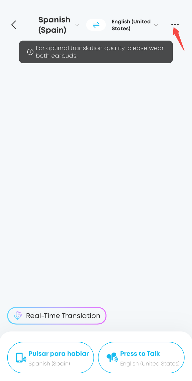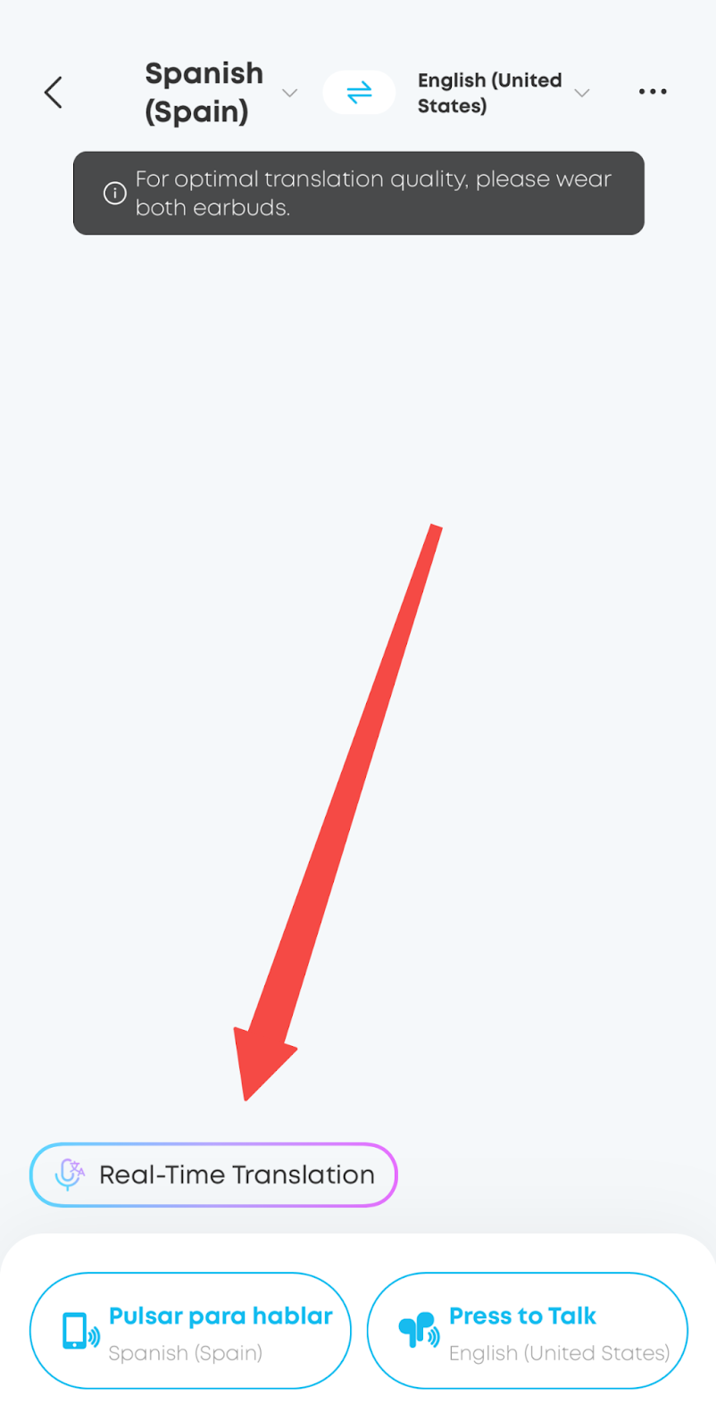 When the other person responds, tap the bottom-left button to switch to their microphone. Their translated words will automatically stream to your earbuds.