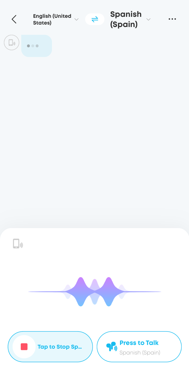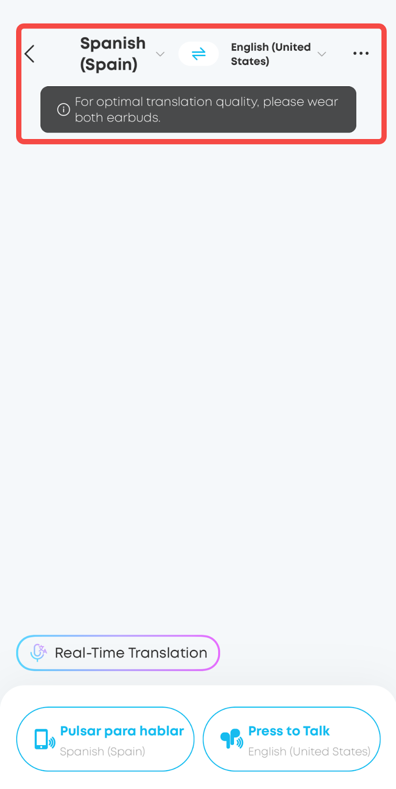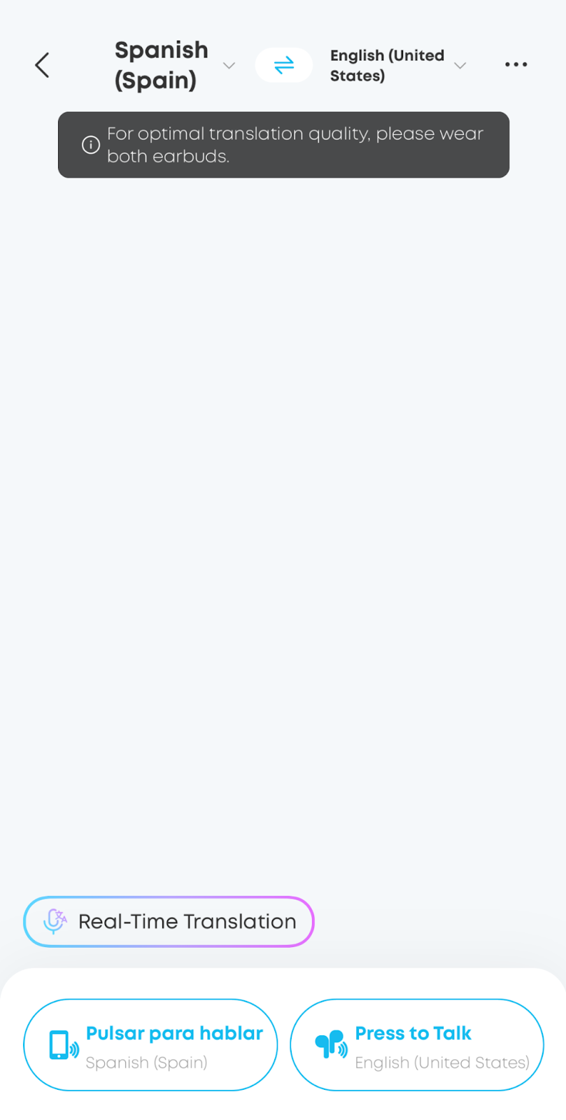 When the other person responds, tap the bottom-left button to switch to their microphone. Their translated words will automatically stream to your earbuds.
