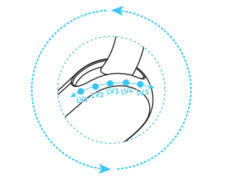 Adjust the ear hook along your outer ear by sliding it between the five available levels, ensuring a good seal and comfortable fit.