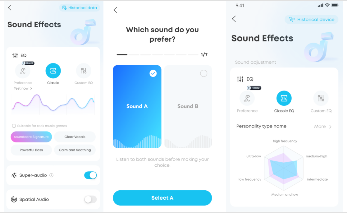 Spatial Audio creates an immersive listening experience by surrounding you with sound. You can choose between the following Spatial Audio modes in the soundcore app:
