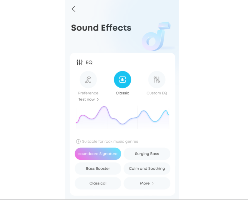 You can also choose from 22 EQ presets to match your usage scenario and preferences.Additionally, you can create your own sound profile by adjusting the eight sliders in Custom EQ.