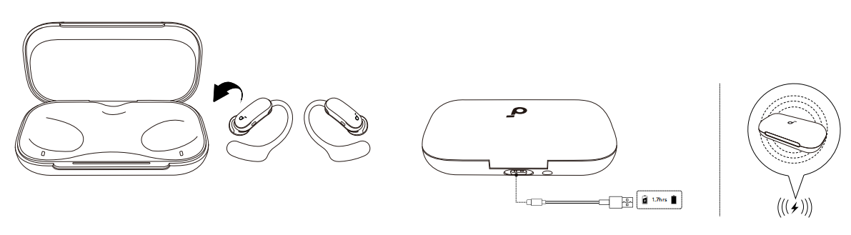 Connect the charging case to a power supply using the provided USB-C charging cable. Alternatively, place the charging box at the center of your wireless charger for wireless charging.