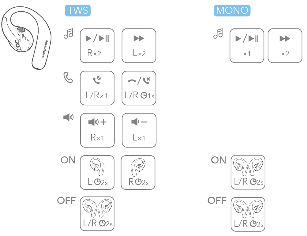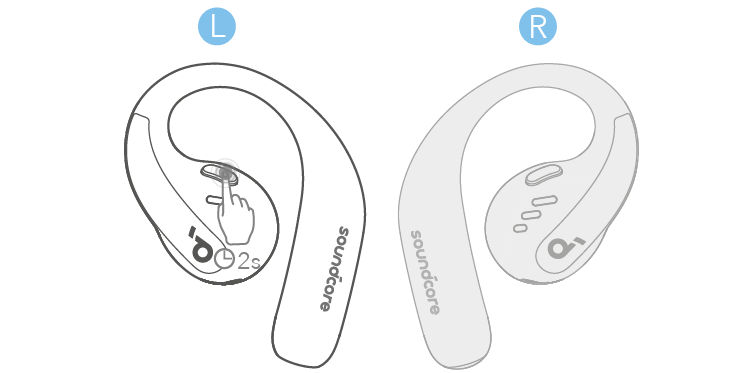 Pro připojení k zařízení při vypnutých sluchátkách stiskněte a podržte tlačítko na obou sluchátkách po dobu 5 sekund, čímž přejdete do režimu párování Bluetooth.