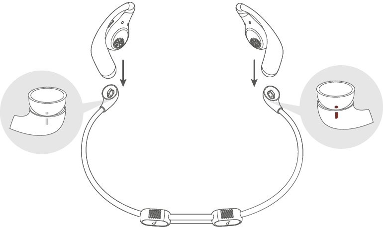 1.Vraťte sluchátka zpět do nabíjecího pouzdra.