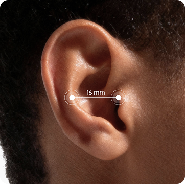 2. Measure the straight-line distance of your ear canal (between the two measurement points) as shown below.