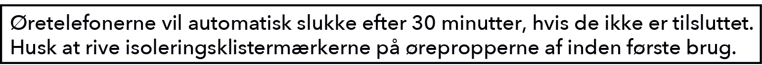 Ørepropper: Du vil høre en stemmemeddelelse om, at batteriet er ved at løbe tør for strøm.
