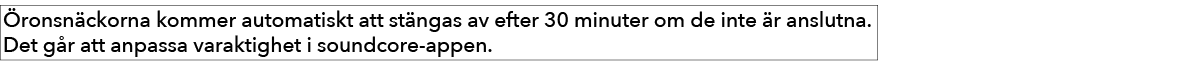Du kommer att bli informerad när en ny firmware-version upptäcks när du ansluter öronsnäckorna till appen. Se till att öronpropparna placeras i laddningsfodralet och att fodralet förblir öppet tills firmware-uppdateringen är klar. Se till att öronsnäckorna är laddade innan du startar uppdateringen och undvik att använda dem under uppdateringen.