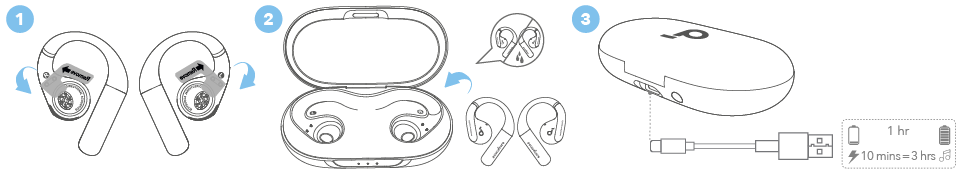 1.Lägg tillbaka öronsnäckorna i laddningshöljet.