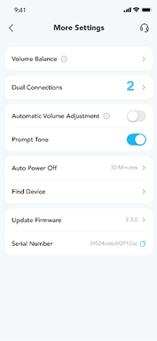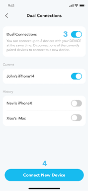Ha egyszerre két Bluetooth-eszközzel szeretné összekapcsolni a fülhallgatót, nyissa meg a soundcore alkalmazást, lépjen a beállításokba, és válassza a Kettős kapcsolatok > Kettős kapcsolatok engedélyezése > Új készülék csatlakoztatása lehetőséget.