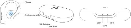 Töltőtok: A LED 1 jelzőfény 3 másodpercig világít, majd kialszik.
