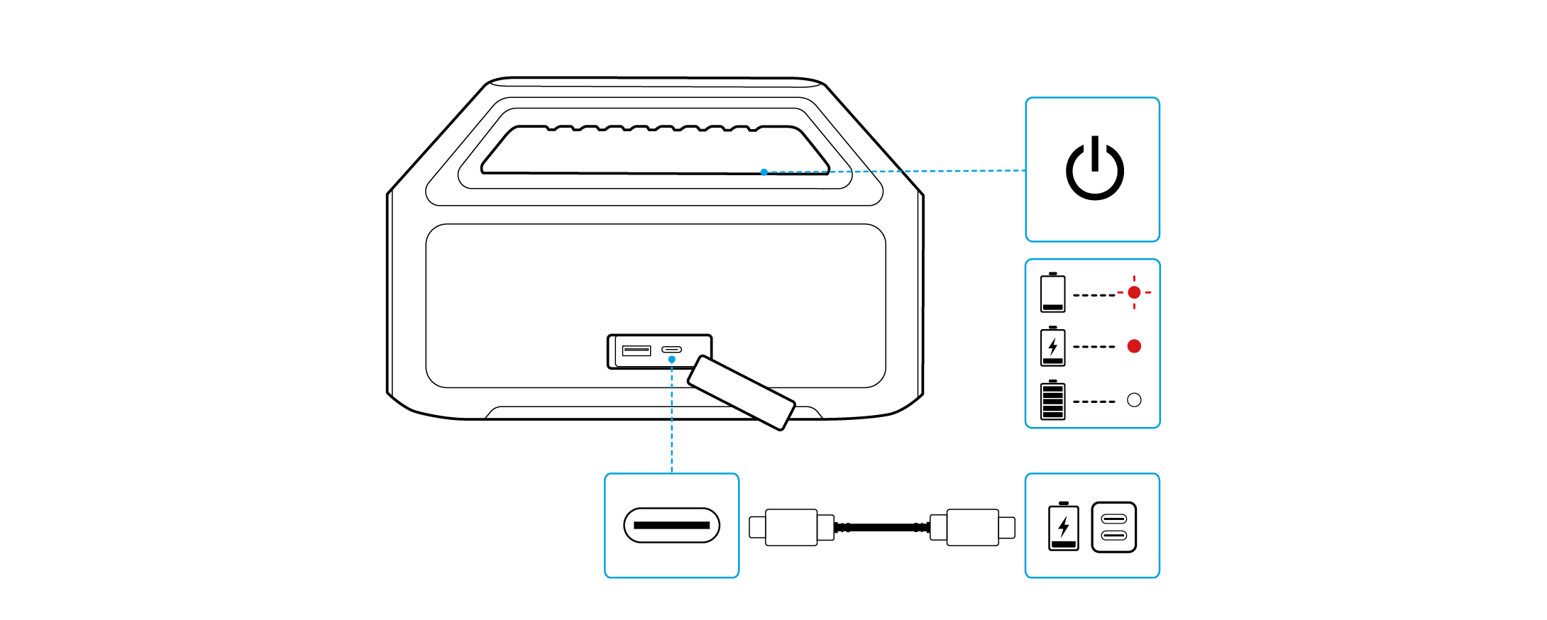 מצב הסוללה: מציג את רמת טעינת הסוללה של הרמקול.