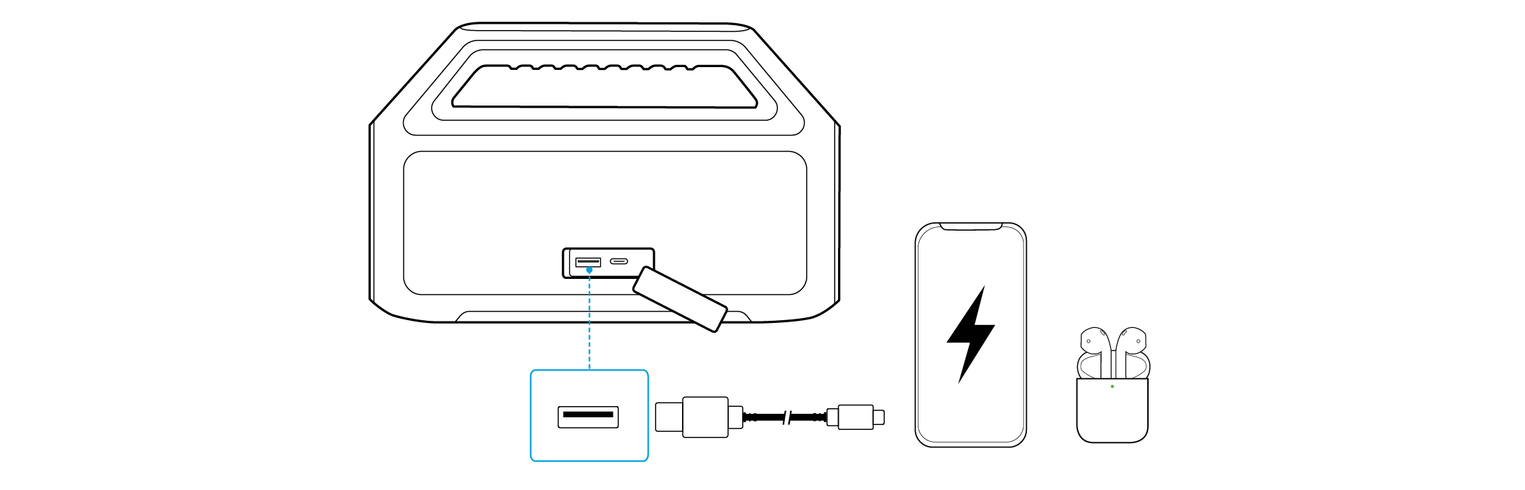 השתמשו ברמקול זה כמטען נייד כדי לטעון את המכשירים הניידים או האביזרים שלכם.