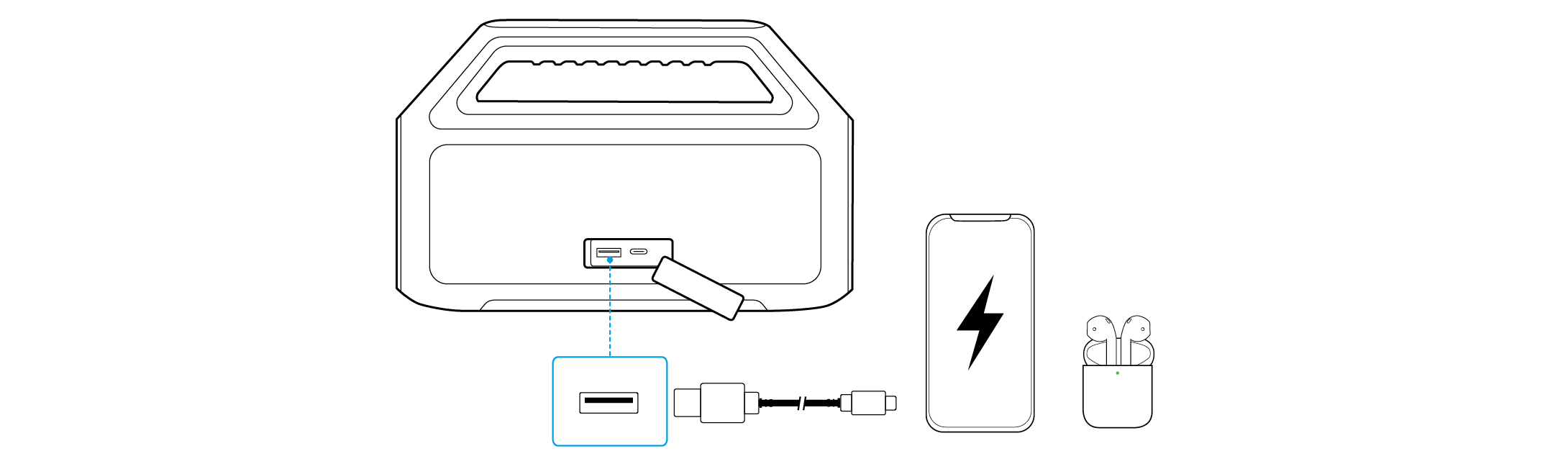 使用這個揚聲器作為行動電源,為您的便攜式設備或配件充電。