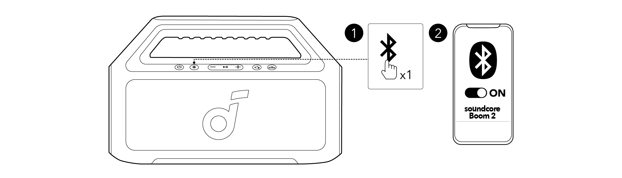 按下藍牙按鈕進入藍牙配對模式,然後從藍牙列表中選擇“soundcore Boom 2”進行連接。