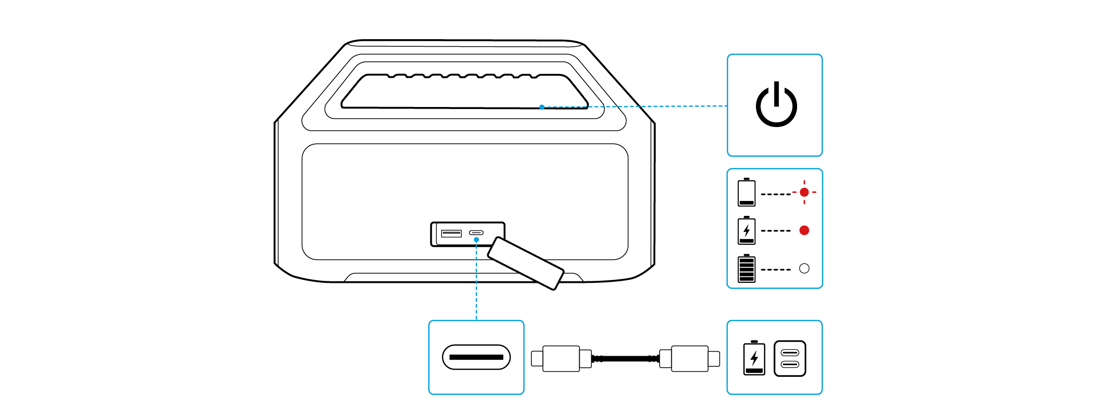 Batterijstatus: geeft het resterende batterijniveau van uw luidspreker aan.